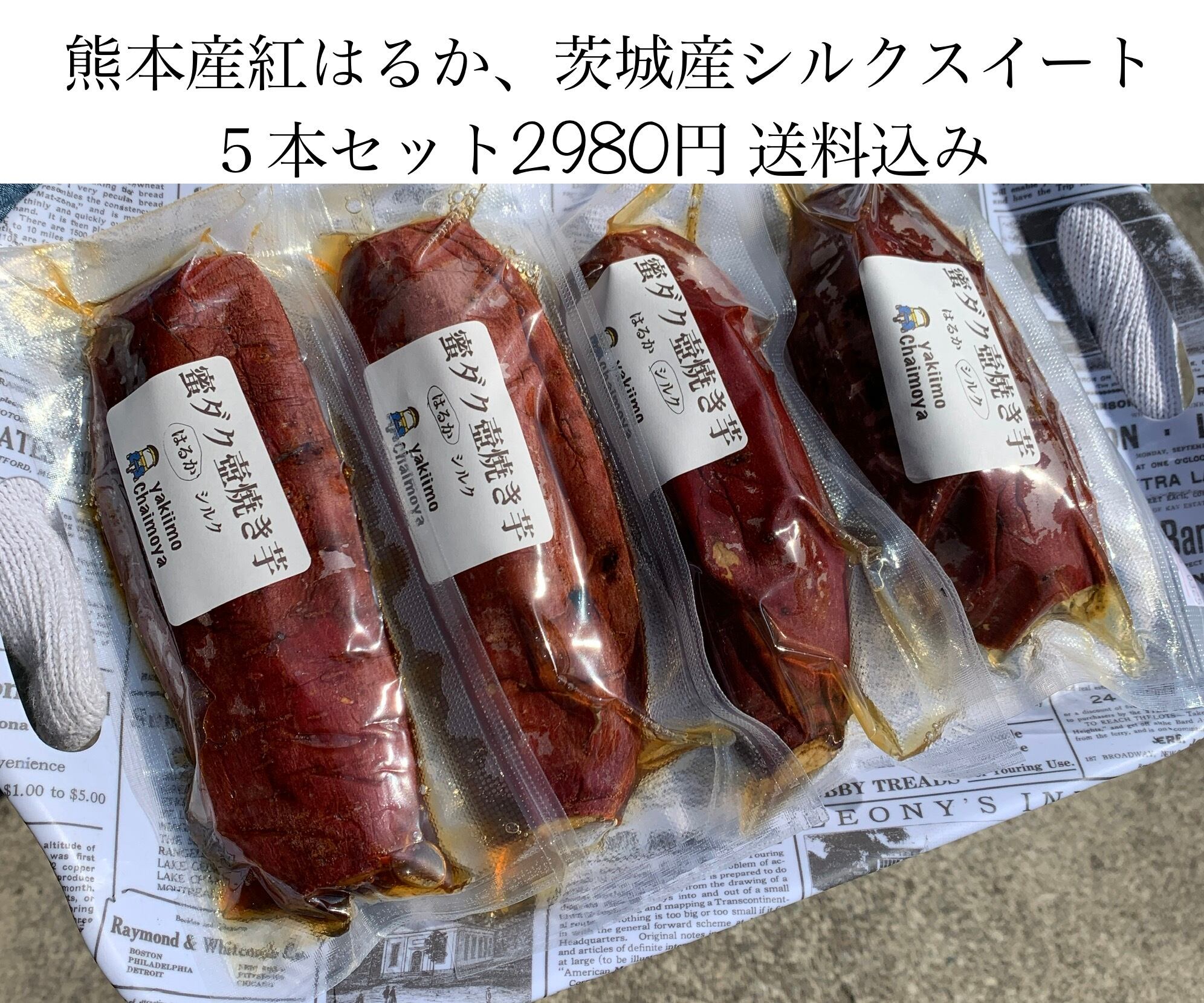 熊本産紅はるか・茨城産シルクスイート5本セット送料込み2980円